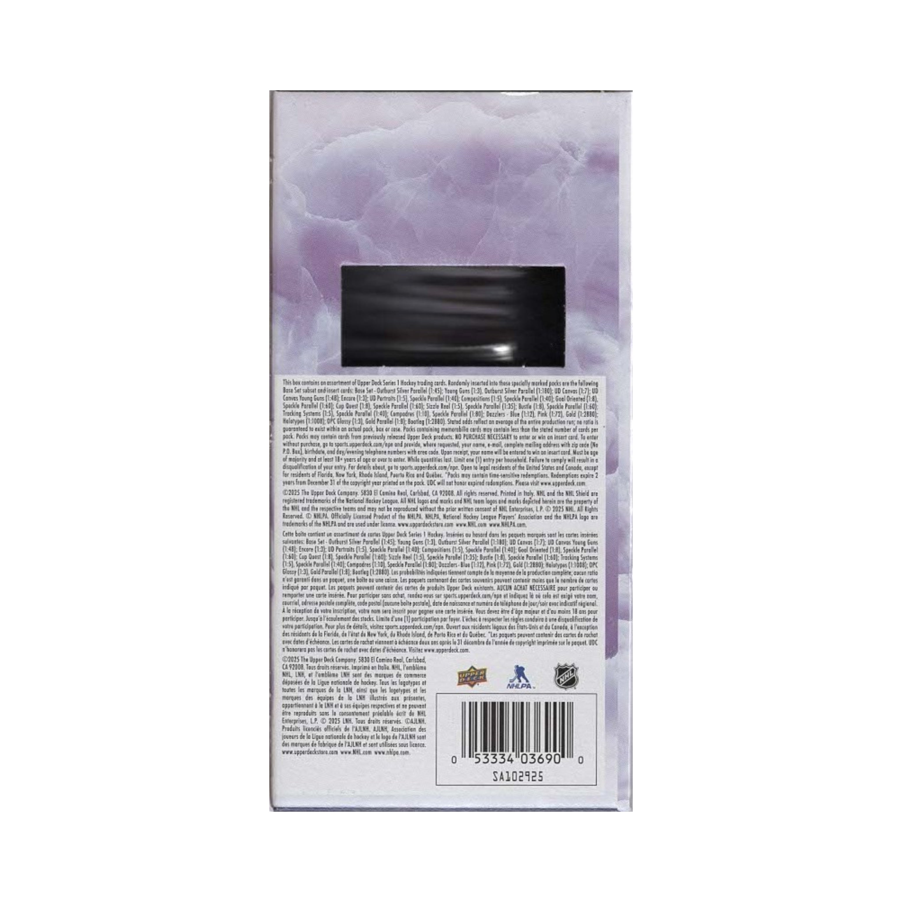 Series 1 sports the first 250 cards of the 2025-26 Upper Deck Base Set. It includes 198 veterans, 49 Young Guns, and 3 checklist cards.
