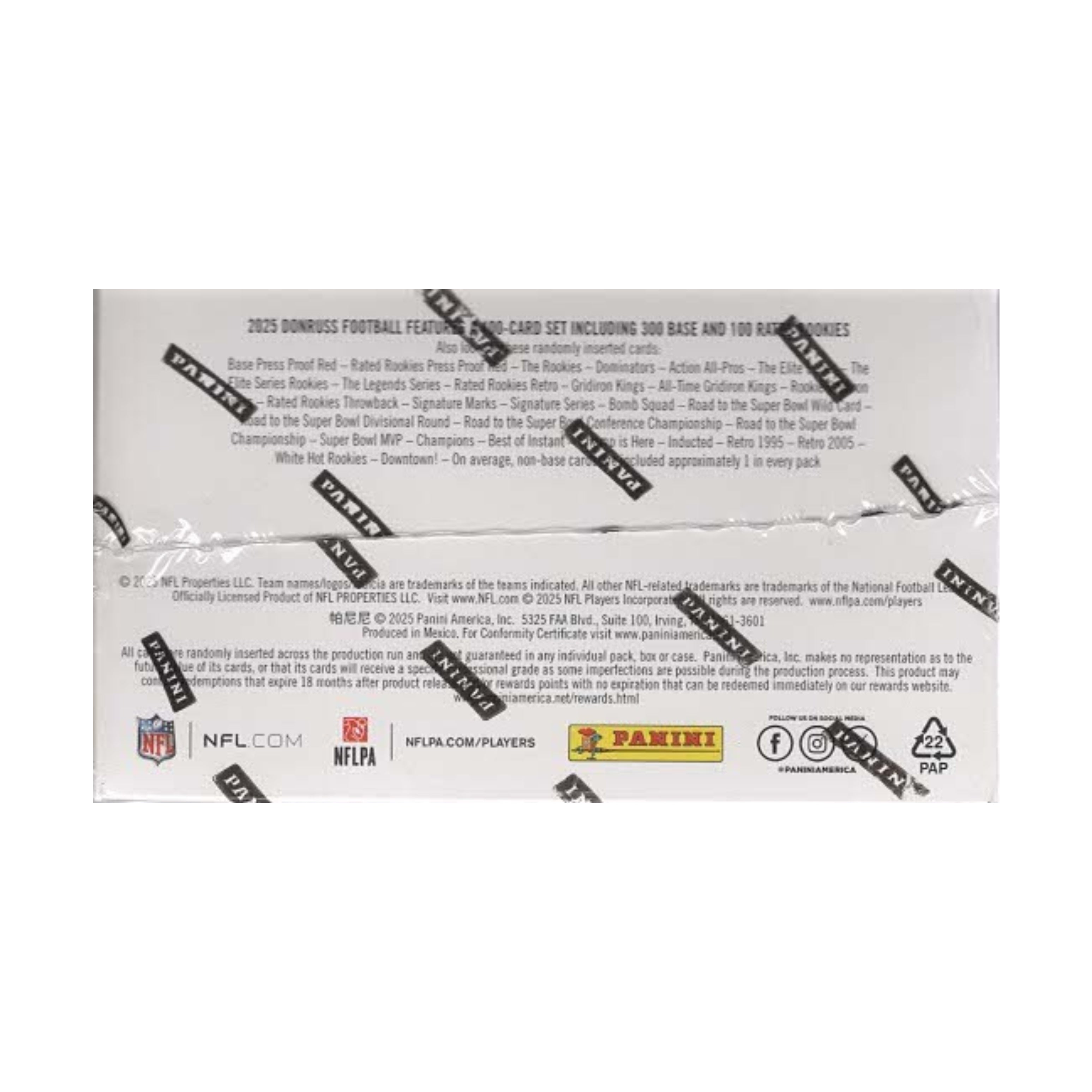 Donruss Football returns for 2025 with a massive 400-card base set, featuring 300 veterans and legends and 100 Rated Rookies, all of which boast a vast and colorful array of parallel chases.