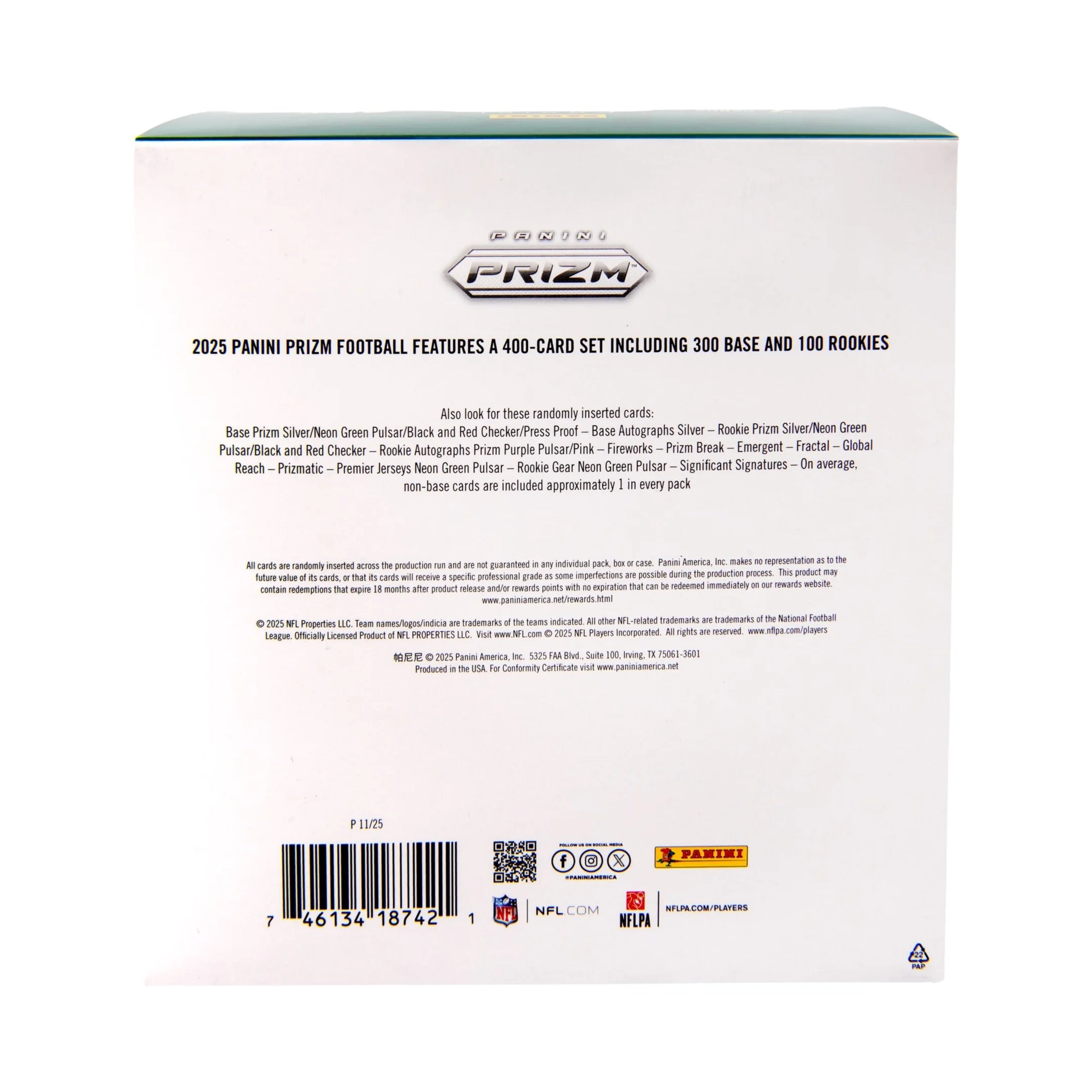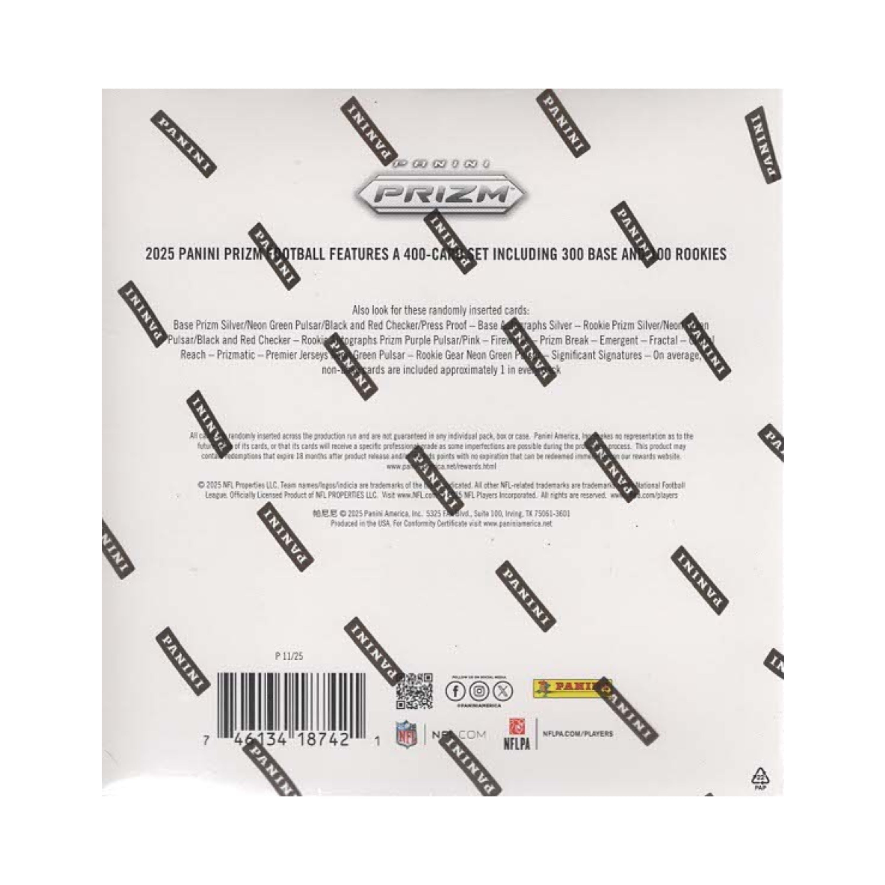2025 Prizm football features a stacked base and insert lineup, including a plethora of retail-exclusive parallels. One of the most-beloved brands in trading card history, Prizm is back again for the 2025 season! Prizm football in 2025 features a 300-card base set and a loaded 100-card Rookie lineup! Look for a wide array of Retail-exclusive Prizm parallels