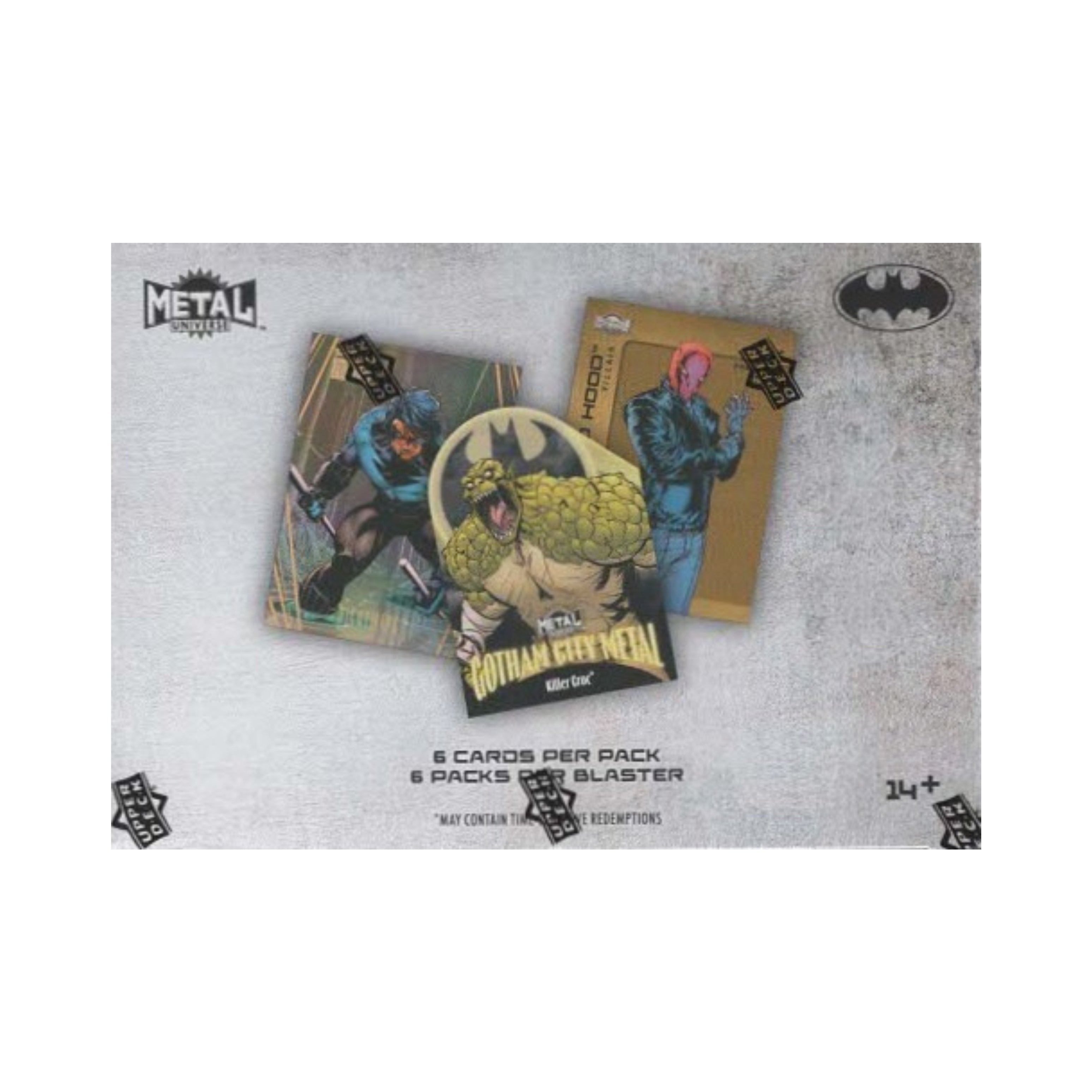 Upper Deck and DC Comics come together in this inaugural Skybox Metal Universe Batman trading card set! Pairing the world of Gotham City and its Caped Crusaders with various card technologies to deliver a highly collectible experience! Uncover serial numbered parallels, etch foil, die-cuts, patterned foilboard, Original Art Sketch cards and more!